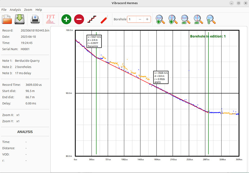 Powerful VoD analysis to help you in the detection of the explosives fault.